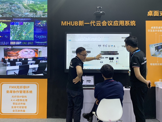 In the FMK optical fiber non-IP agent collaboration management system experience area, the audience is experiencing the optical fiber zero-delay agent collaboration management system.